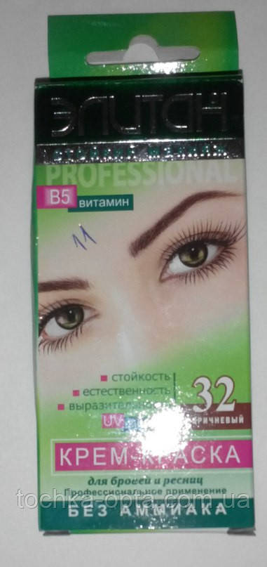 Нова формула крем-фарба для брів і вій без аміаку "Стий макіяж" Елітан забезпечує стійкий макіяж на тривалий час навіть під час контакту з водою. Вітамін В5, що входить до складу продукту, захищає брови та вії від ламкості та випадання, робить їх здоровими та блискучими.